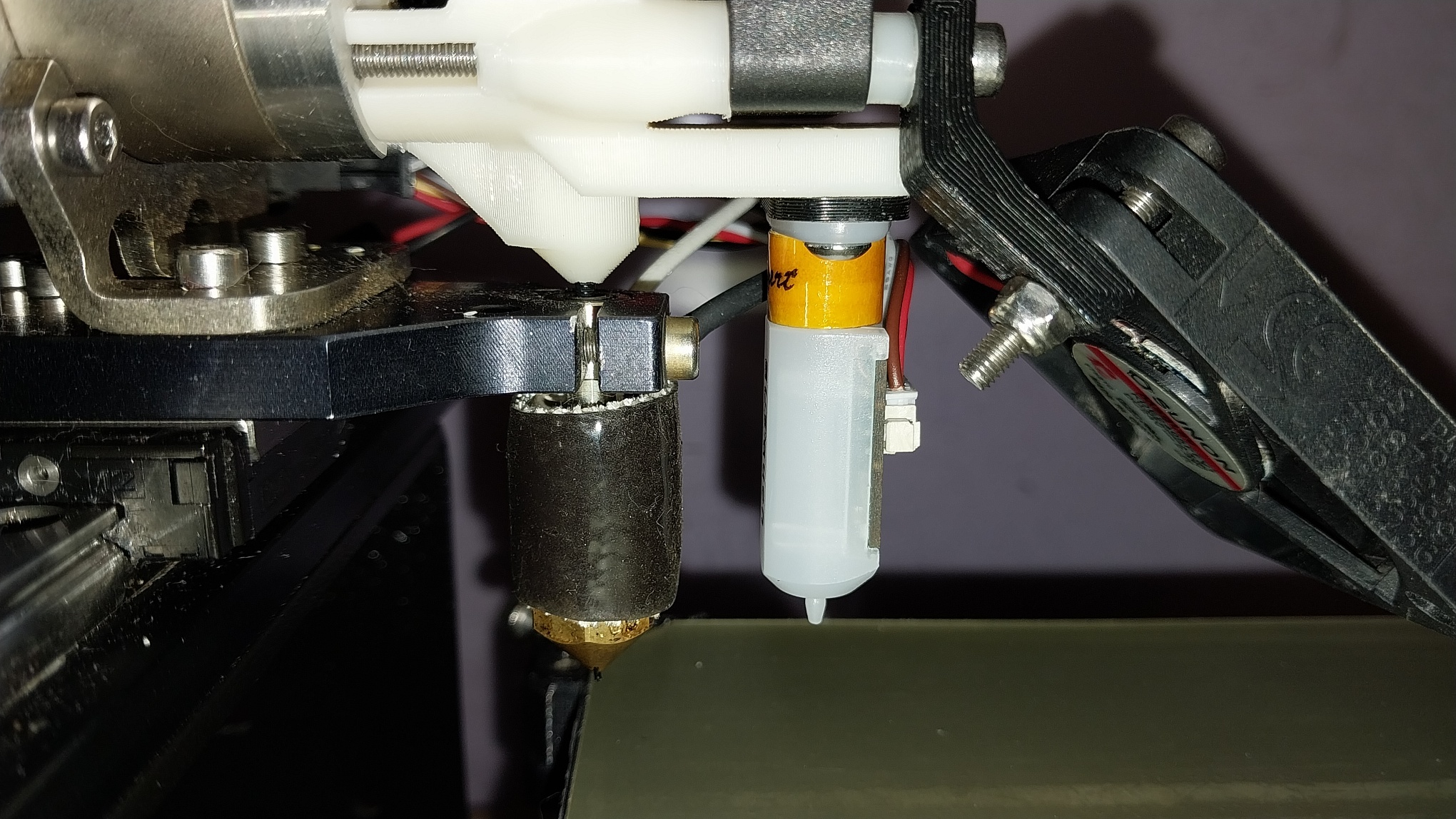 The switch mounts on the gantry near the middle and the lever dangles 1 mm (-ish) higher than the nozzle, barely clearing prints-in-progress.