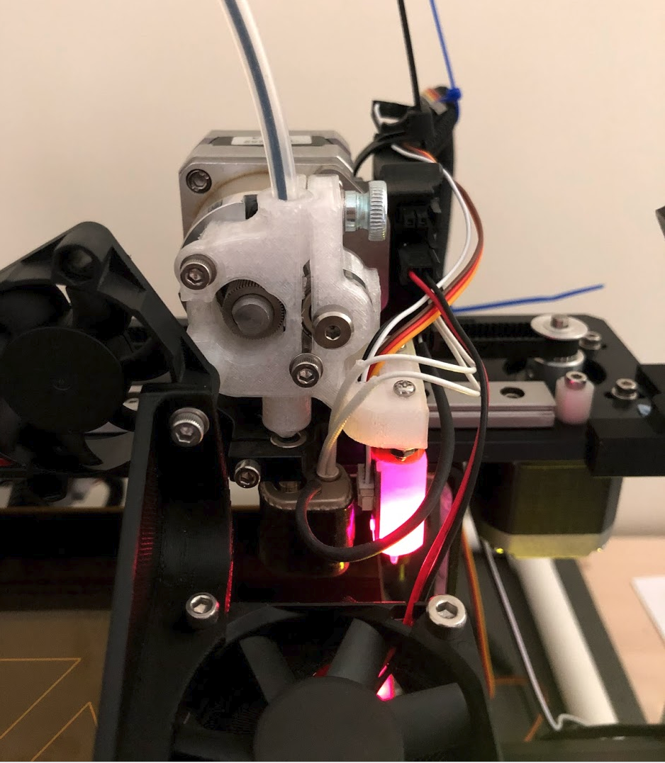 Nice implementation! Thanks for the wiring diagram on the Thingiverse post. It is encouraging to see that it can be done without using any of the ports needed for the dual extruder. As I posted in my comment to your design on Thingiverse, I have an inductive sensor that I have not been particularly satisfied with because it stops working near the edge of the build plate which is exactly the spot where you want to home it. I considered trying to redesign the extruder mount so I could put the probe a bit further back, but it was already pushed back about as far as I could get it, so I wasn't sure that was even possible. The BLTouch seems like a better solution overall, especially if I can fit it in with the existing electronics board. Thanks for sharing!