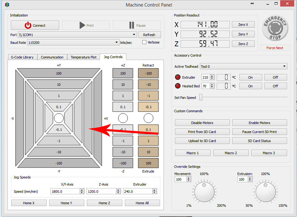 Anyway, since Will and Steve have already covered everything brilliantly, I'll just put up the pic that shows how to move the bed along the Y-axis and print head along the X-axis (horizontally) in S3D, since you also asked about that. (And I already had it prepared.