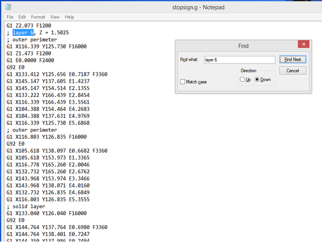 Make note of Layer 5, that's the last solid top layer for the body, (you'll start to see the text). You will want to insert the pause code for the color change 1 layer higher. (Layer 6).
