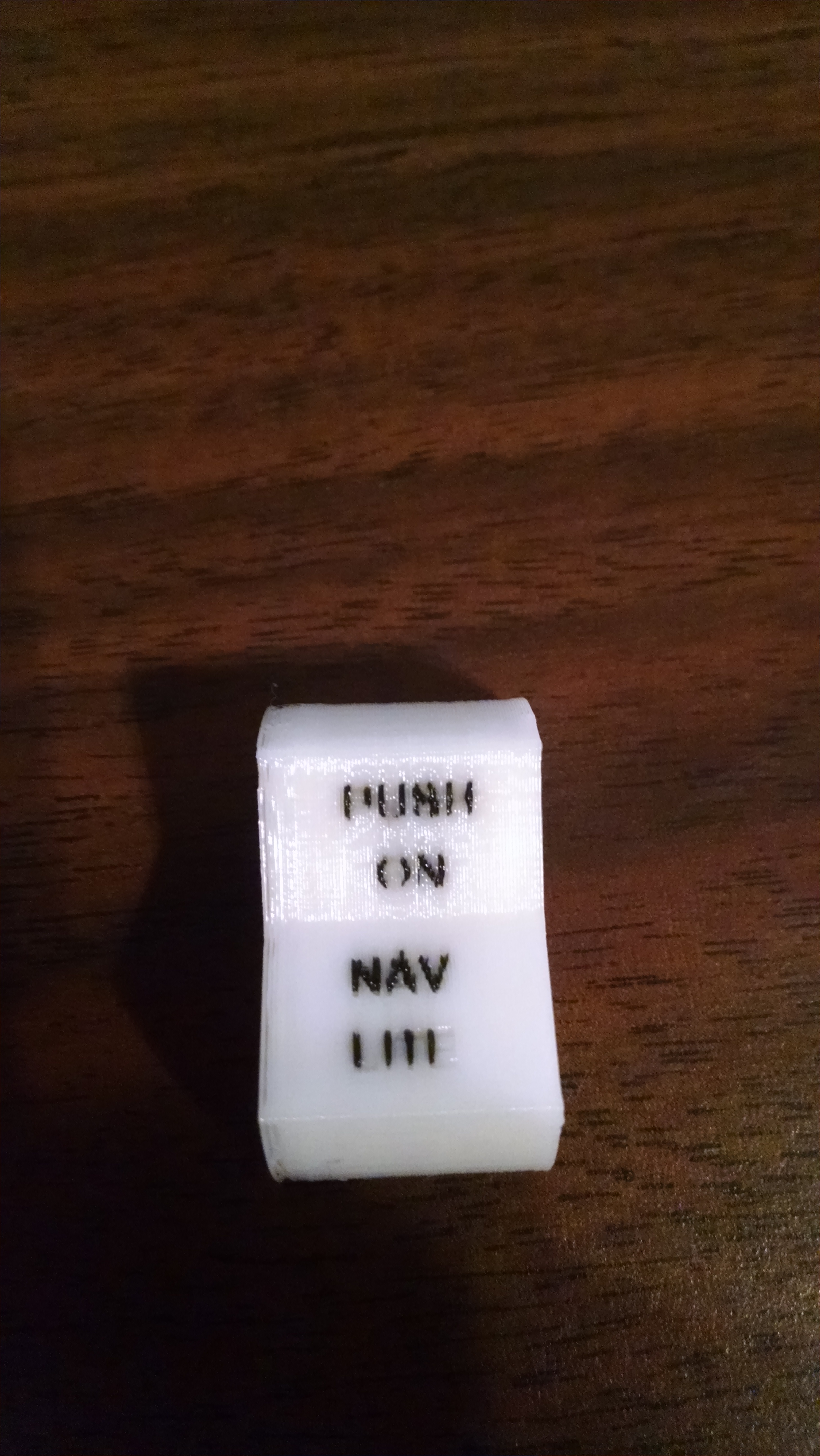 I have been trying to build aircraft switch covers for a while now. I found trying to print lettering just does not look good enough, however, a laser engraver does a great job. That still leaves the problem of contrasting color in the lettering. I made some that look great by painting a cover made from black nylon, then lasing off the paint. The paint does not hold up as well as I would like, though, so I came up with a new idea...